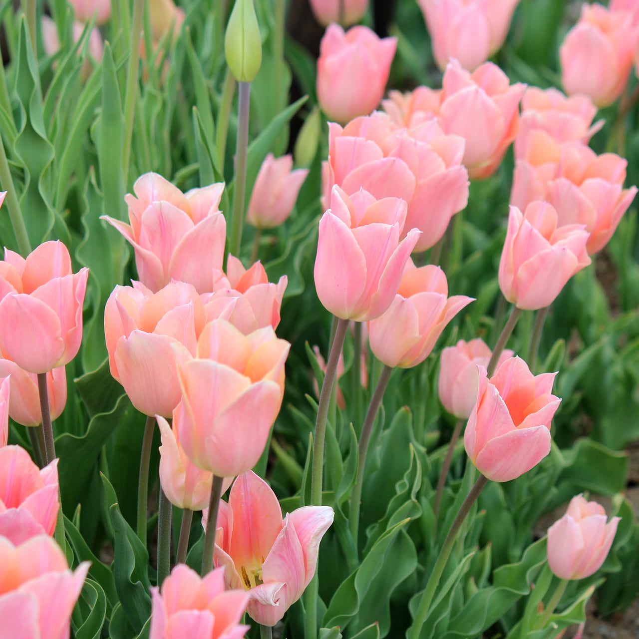 他の品種とも合わせやすい、シンプルな一重咲きの杏色チューリップです。