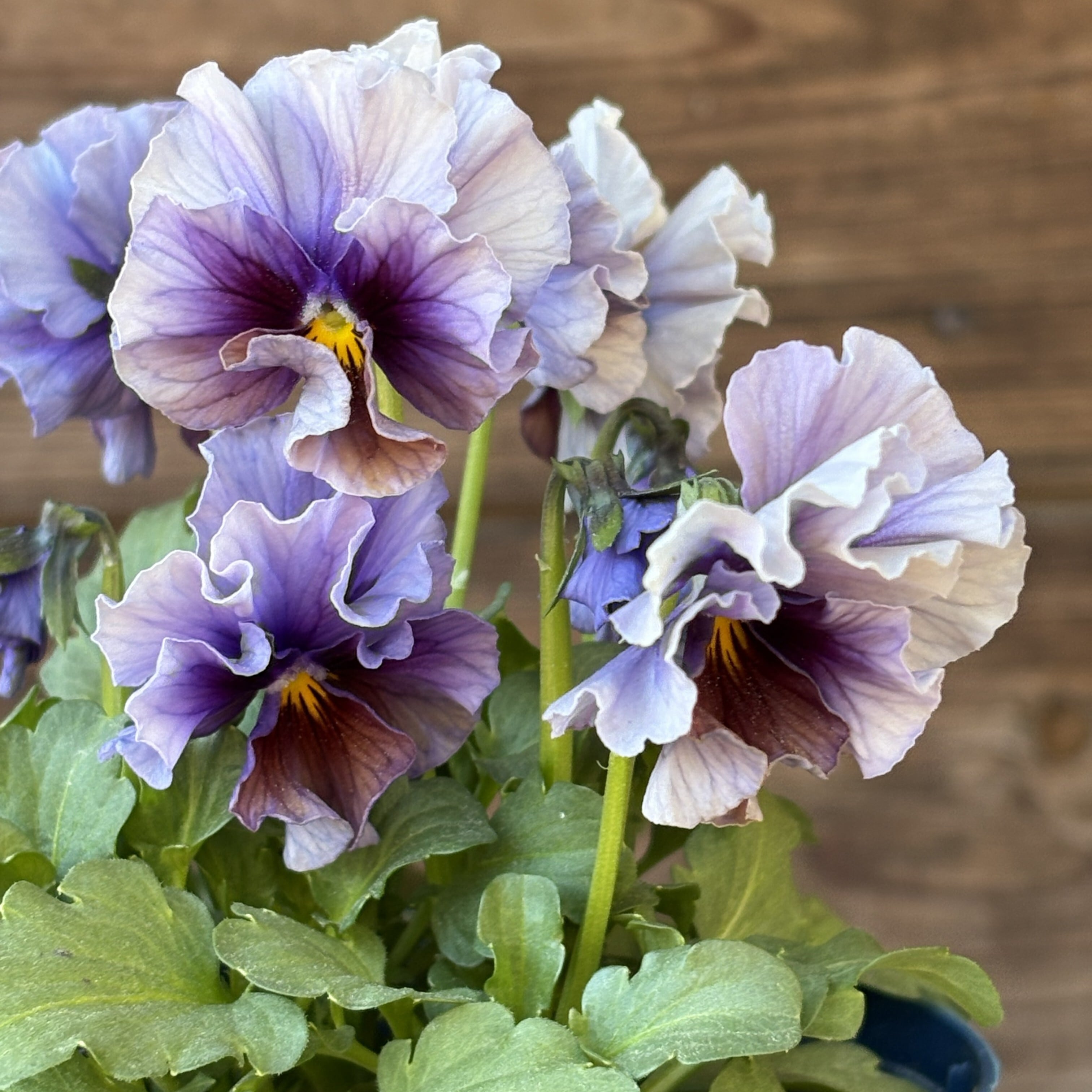 ブルーを中心としたセピアカラーが美しい、みずみずしさも感じる花色です。