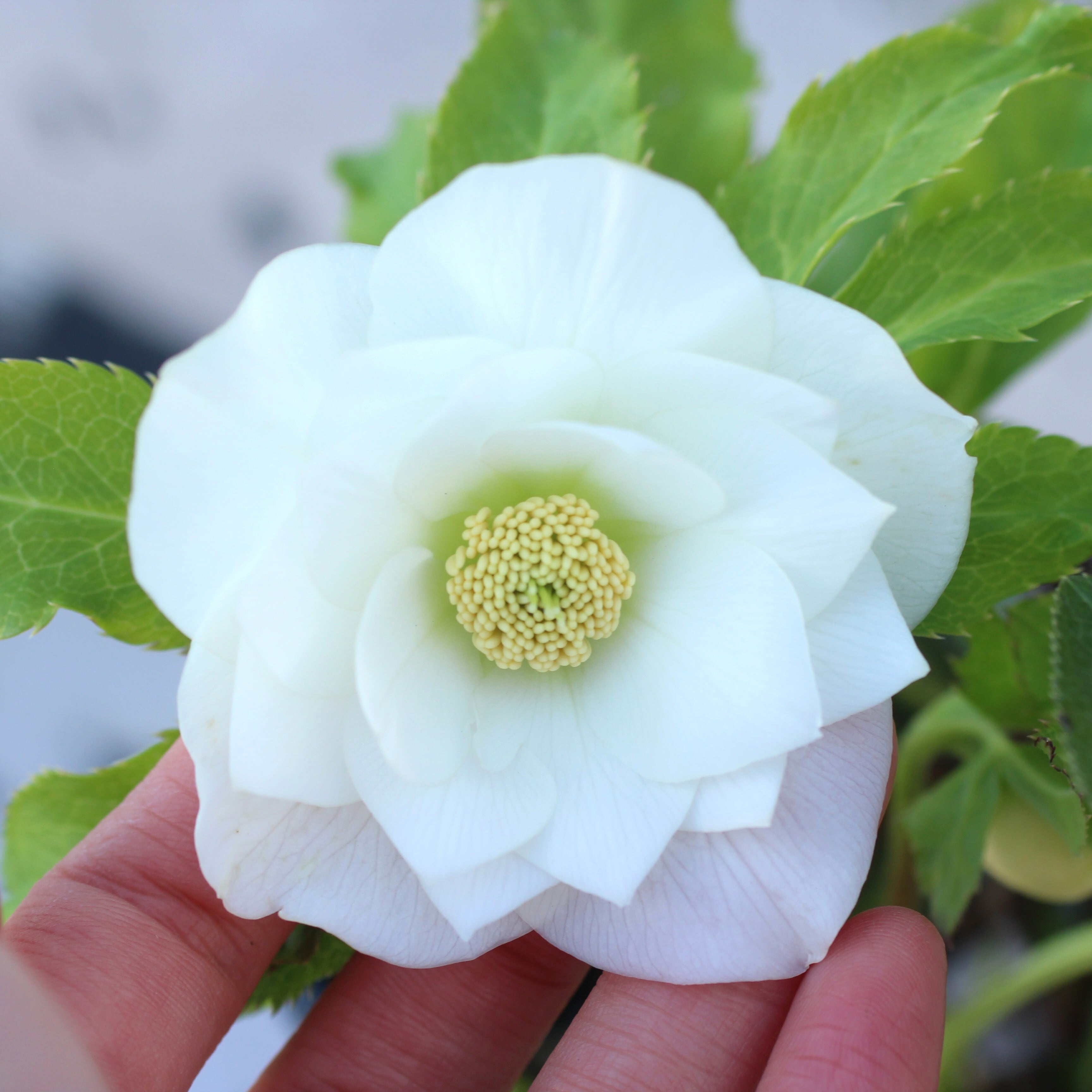 ウェディングドレスのような純白のダブル。つぼみ付き。(12/22撮影)