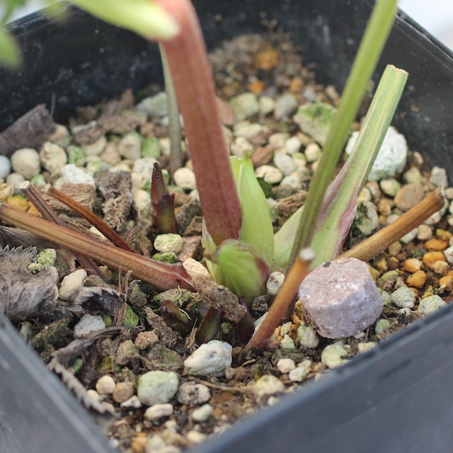 夏季は休眠しているので風通しのよい日陰で管理し、水遣りはひかえます。