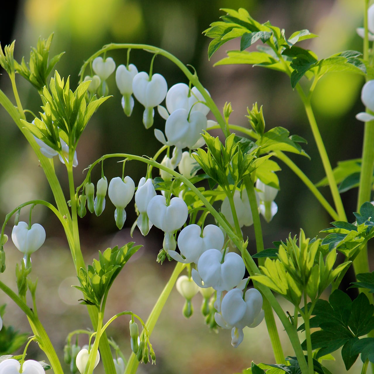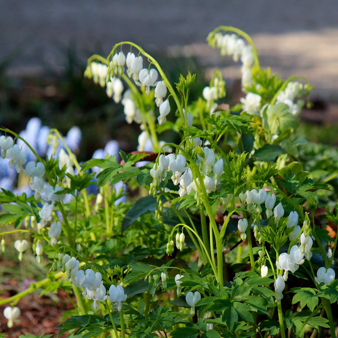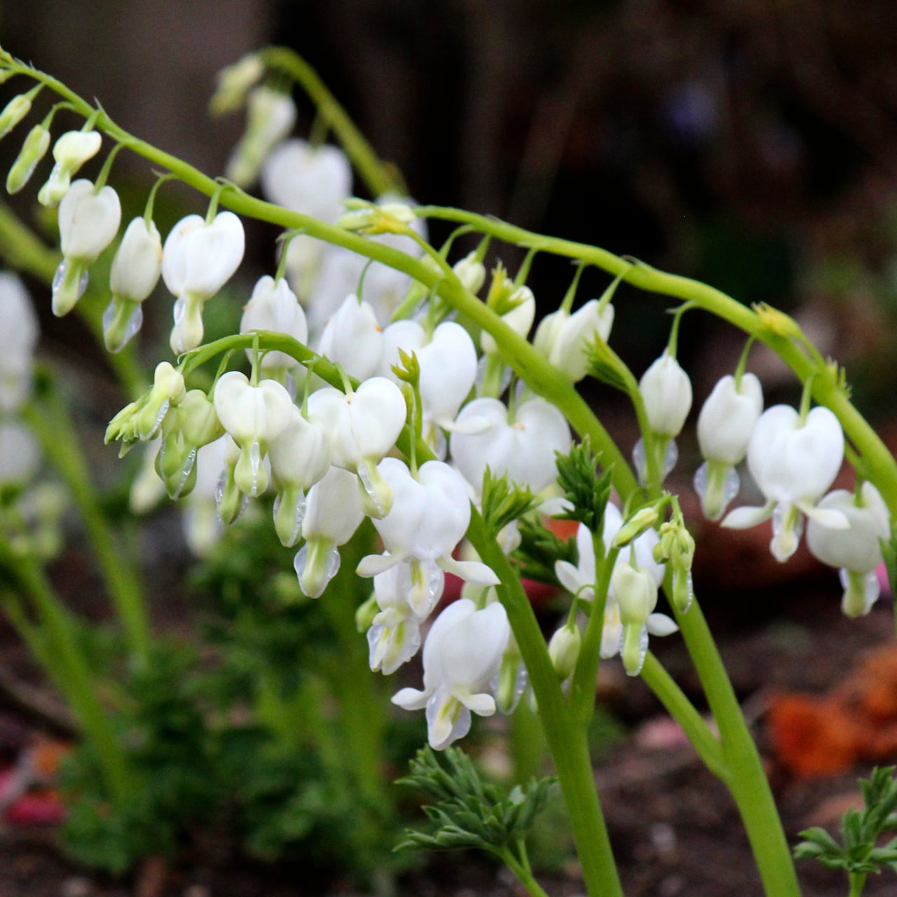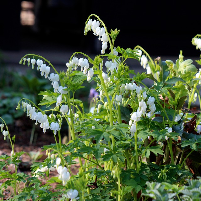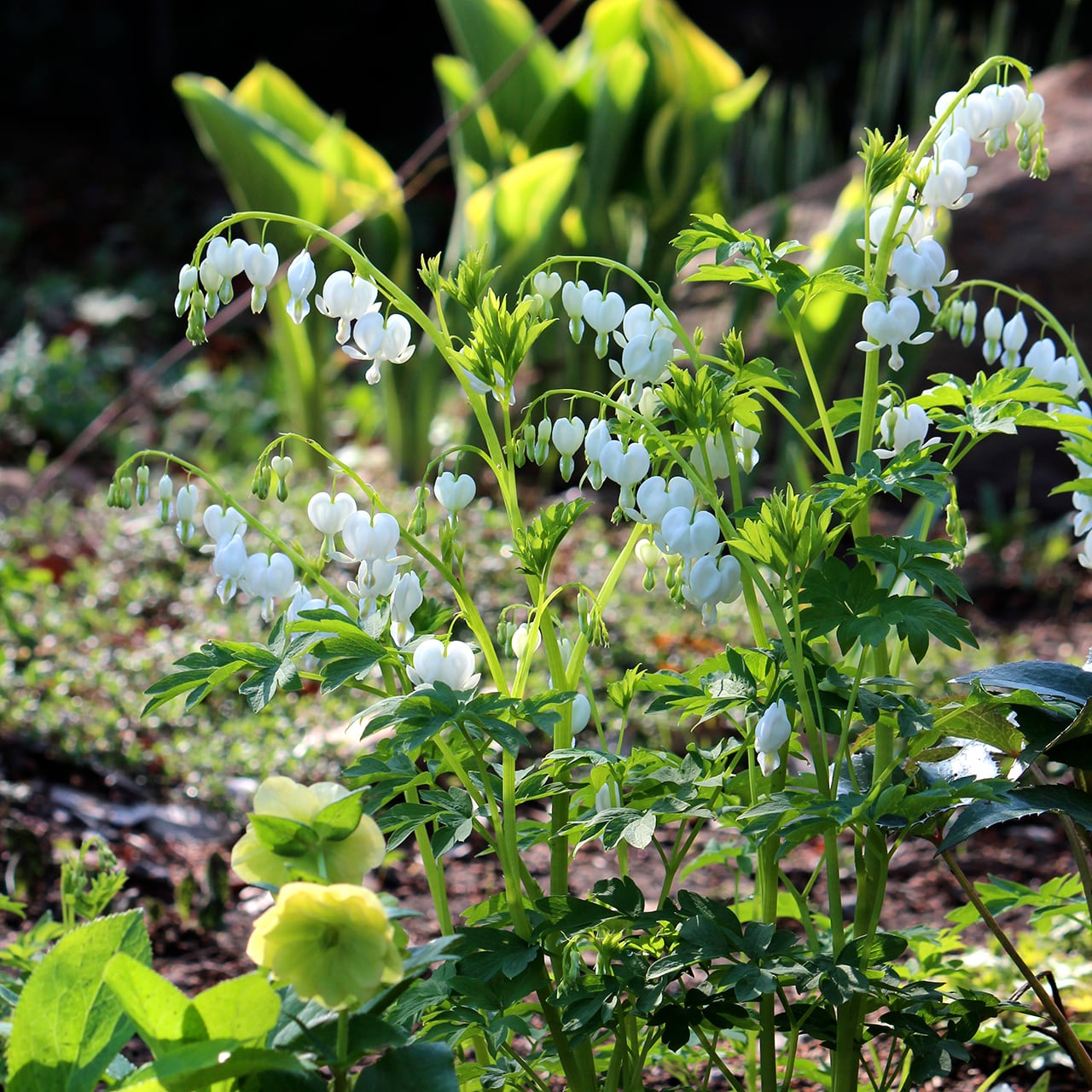 ディセントラは春の人気の定番宿根草。純白の花が清楚な印象で、シェードガーデンに好適。生育はゆるやかなので、じっくり育ててみたい品種です。