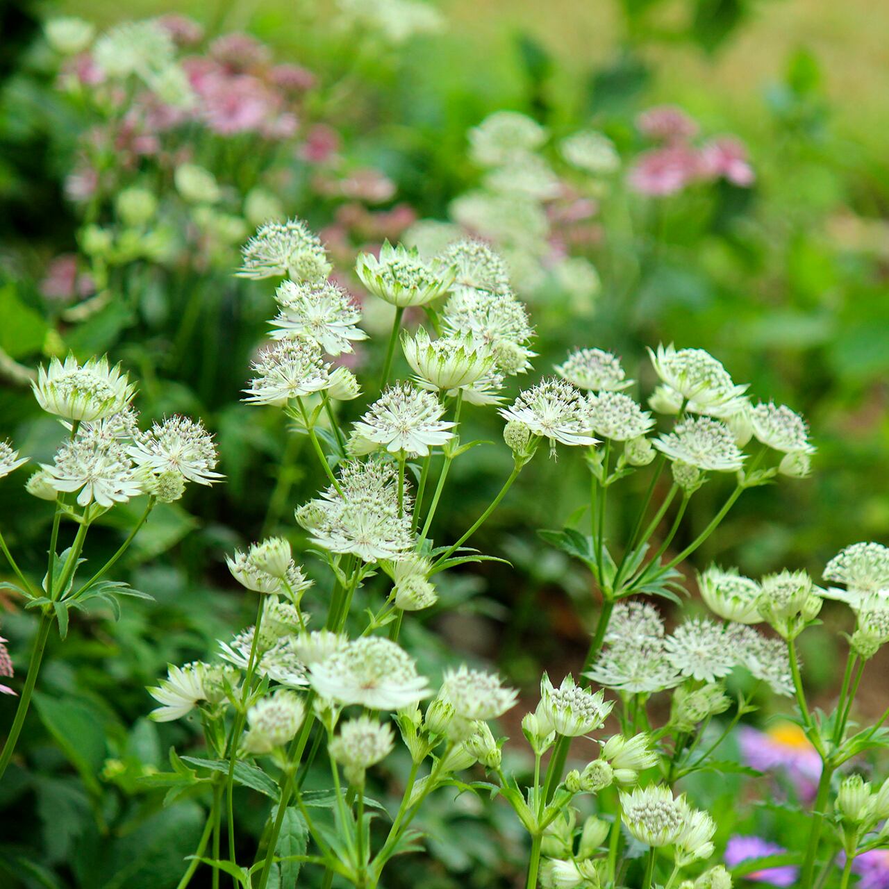切り花として流通の多い人気のお花アストランチャ。ユニークなお花が魅力で、海外でも長年人気の宿根草です。やや湿り気のある環境を好みますが、夏の高温多湿は苦手なので、特に暖地では風通しが良く夏場涼しくなる場所に植えると夏越ししやすくなります。比較的肥沃な土を好みますので、鉢植えの場合は春と秋に必要に応じて肥料を施します。