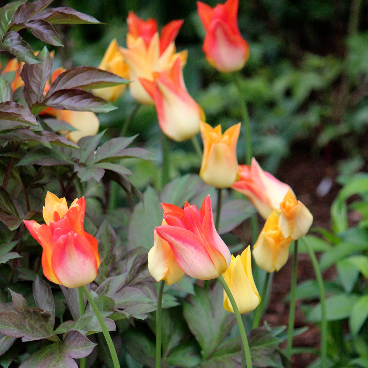 黄色とオレンジのグラデーションカラーのユリ咲きチューリップ。