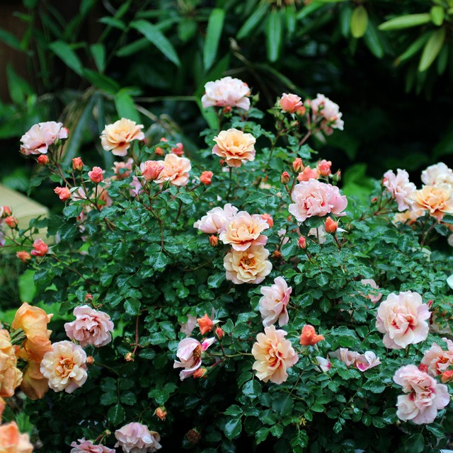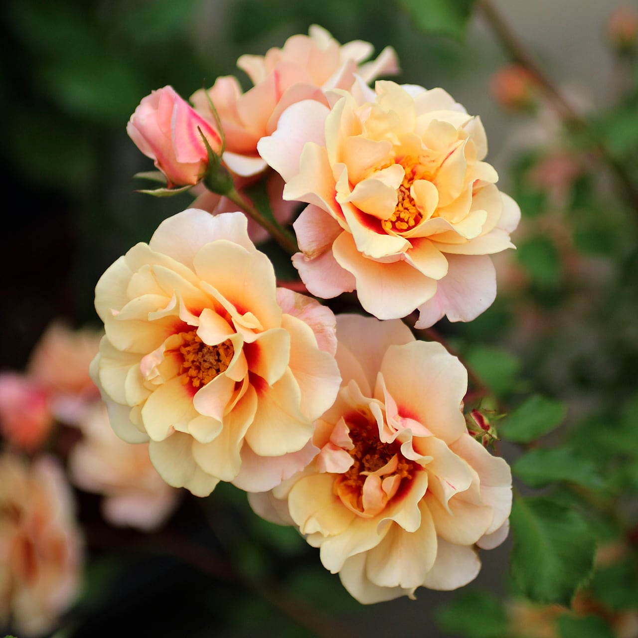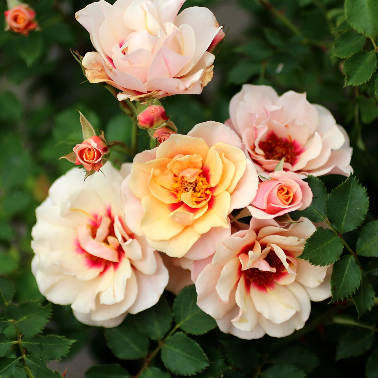 花弁の縁がやわらかく波打つ花は、オレンジ、アイボリー、ピンクと環境により様々な表情を見せる。花の中心に入る濃いクランベリーピンクのアイが魅力。花付きが良く、特に春は株全体に花を付け、とても華やか。株はやや横張りで、コンパクトにまとまるため鉢植えにも向く。